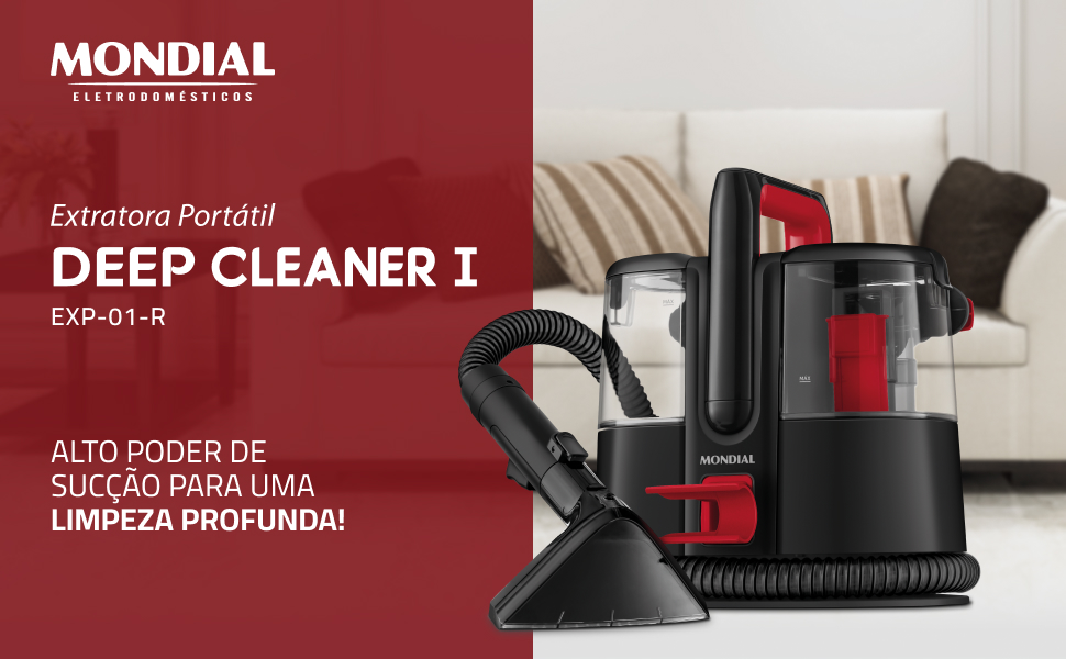 A Extratora Portátil Deep Cleaner I Mondial revoluciona sua rotina de limpeza com tecnologia profissional. Sua potência de 1.650W garante força superior para borrifar, esfregar e extrair sujeiras incrustadas com menos esforço, proporcionando resultados de higienização profunda em diversas superfícies.