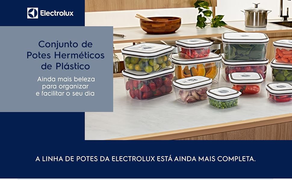 O Kit com 12 Potes Electrolux oferece solução completa para organização e armazenamento de alimentos. Fabricados em polipropileno de alta qualidade, os recipientes apresentam diferentes tamanhos para atender diversas necessidades culinárias.