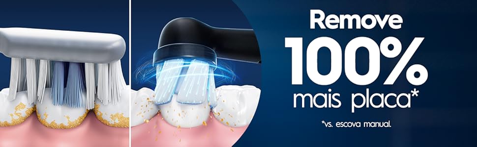 - ✓Remove 100% mais placa bacteriana vs. escova manual