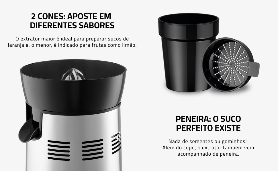 Extrator elétrico com motor 250W e sistema bivolt automático para máxima praticidade